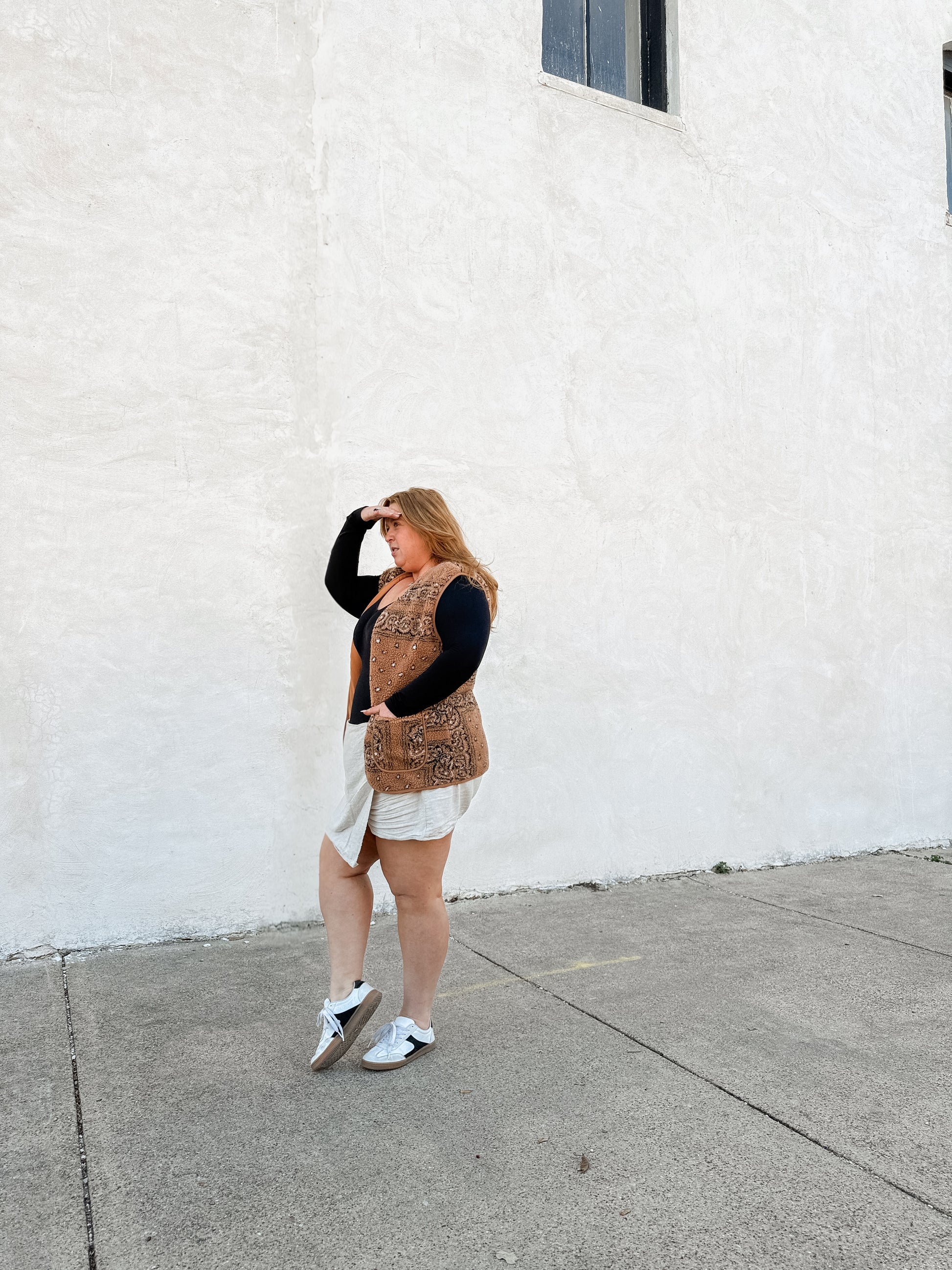 Get western charm and cozy comfort with our uniquely patterned sherpa vest. Its sleeveless cut is perfect for layering over flannels, sweaters, and long-sleeve tops, while the functional pockets add practicality and flair. Add a touch of style to your wardrobe effortlessly!