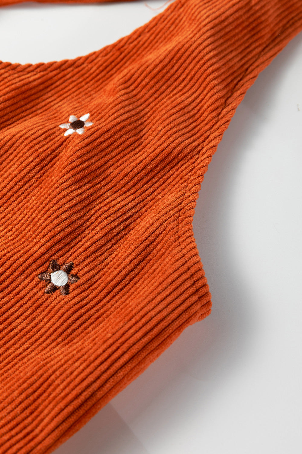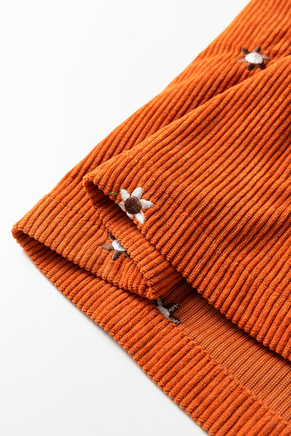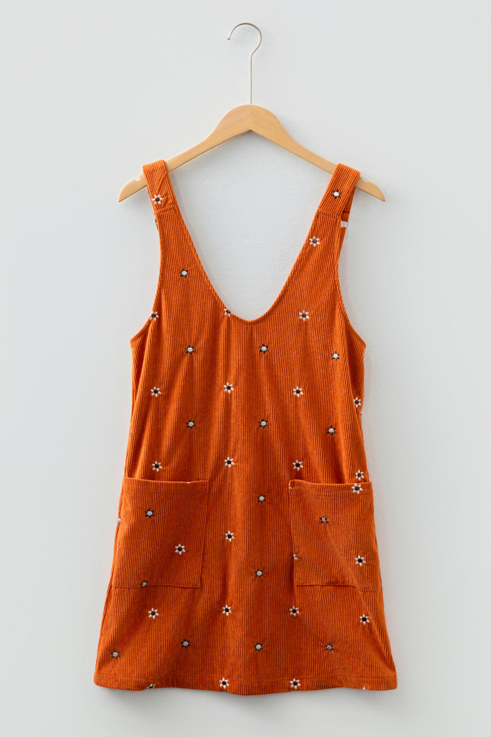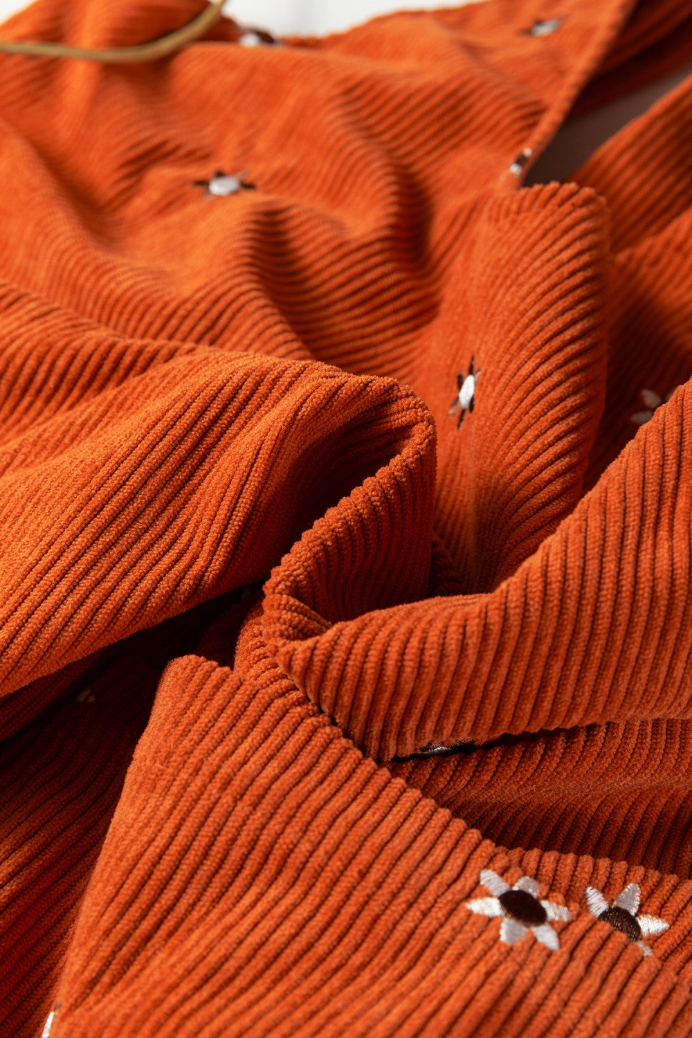 Bloom into style with this charming corduroy overall dress, where delicate flower embroidery brings botanical beauty to every wear. The textured corduroy fabric delivers cozy warmth with that coveted vintage vibe, while adjustable straps ensure the perfect fit for all-day comfort. Cut in a fun mini length, this playful piece strikes the ideal balance between youthful and timeless—perfect for casual outings, weekend adventures, or whenever you want to add a touch of whimsy to your wardrobe. A modern take on a classic silhouette that celebrates individuality and charm.