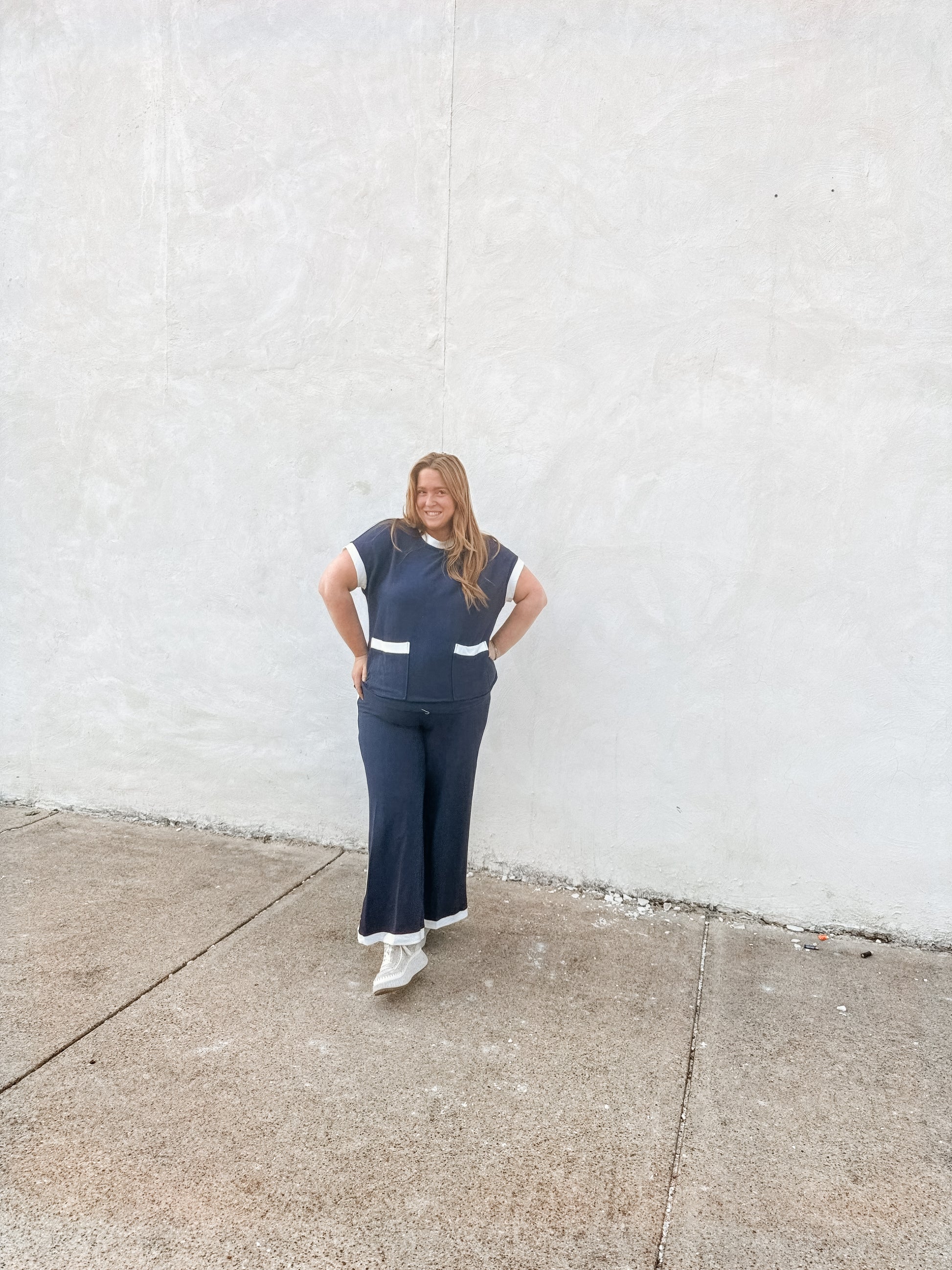 Add a pop of fun to your wardrobe with this playful two-piece set featuring stylish contrast trim for a cool colorblock vibe. The cap sleeve tee comes with handy front pockets, while the high-waist, wide-leg pants offer comfort and flair. Perfect for mixing and matching, this set is ready to take you from casual hangouts to stylish outings with ease.