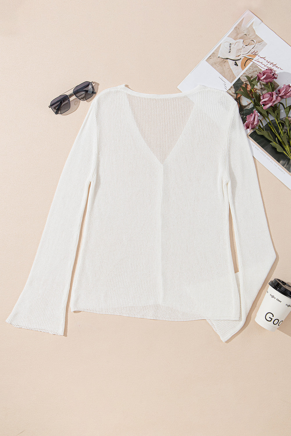 This lightweight cardigan is perfect for cozy fall days, combining comfort with a flirty vibe. Its sexy V-neckline adds a touch of allure, while the buttoned front makes it easy to style up or down. The playful bell sleeves bring a graceful, fun twist to your knitwear collection.
